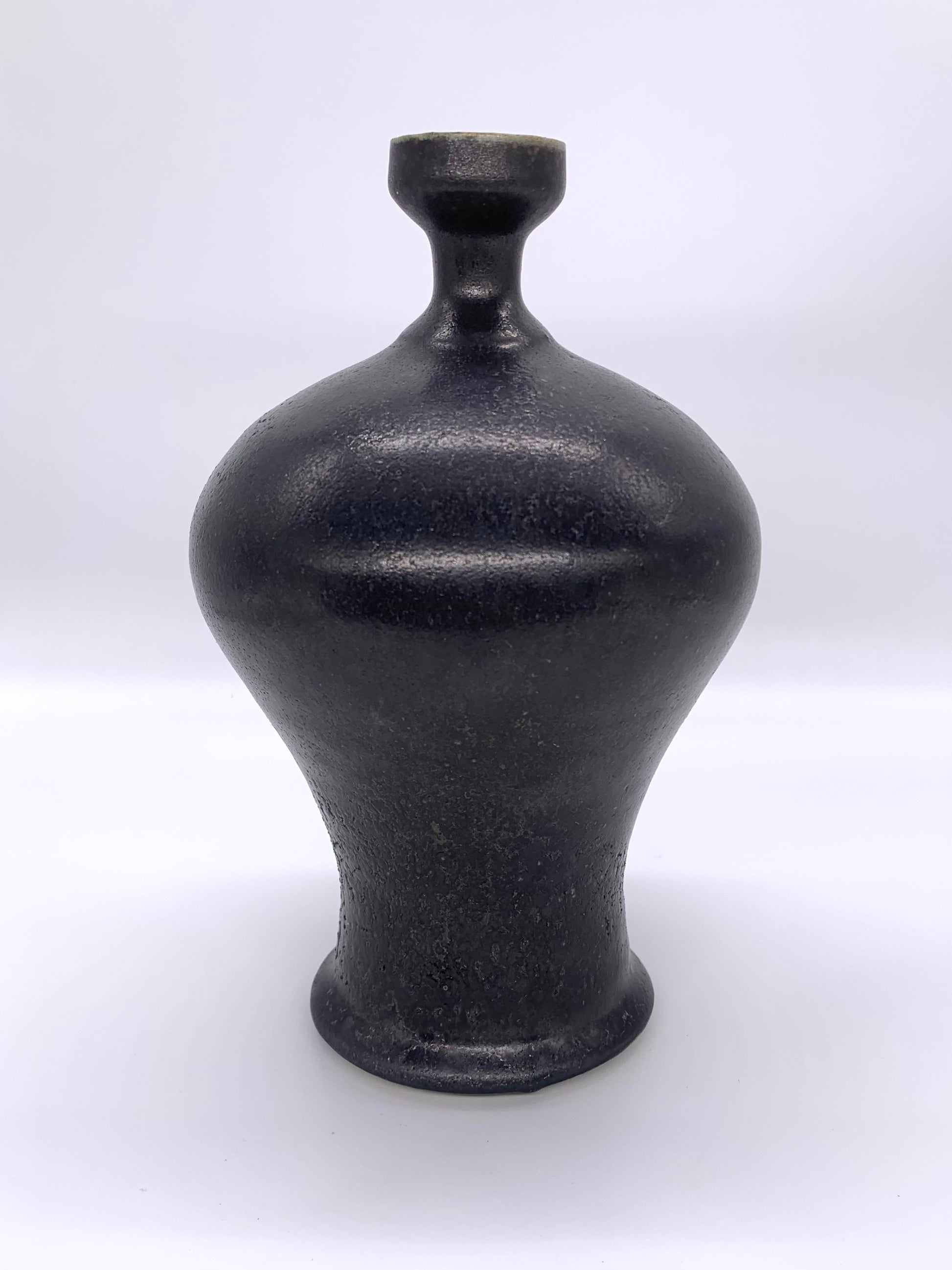 A lovely textured black glaze on a tight neck vase 7.5"H x 4.5"w