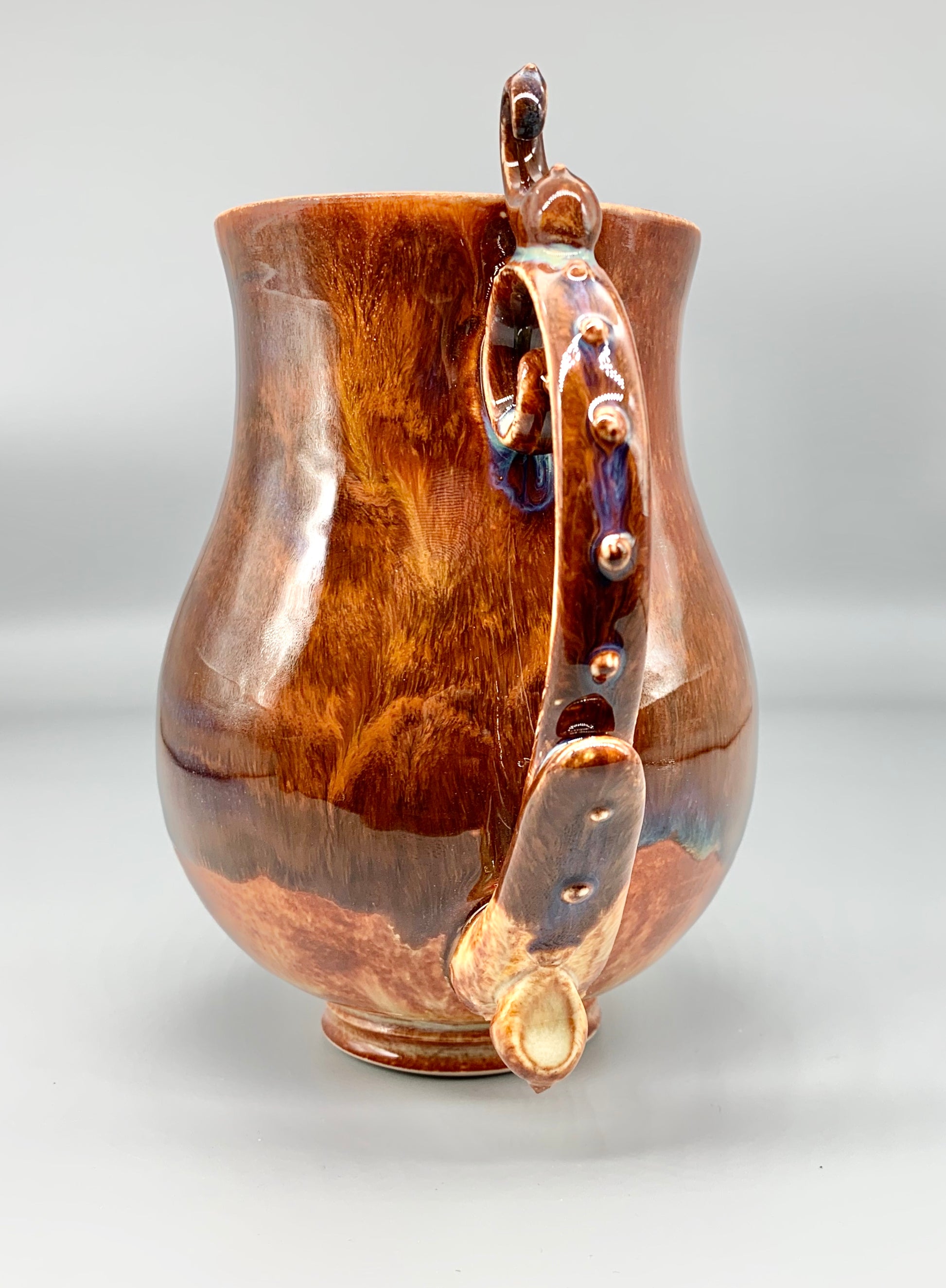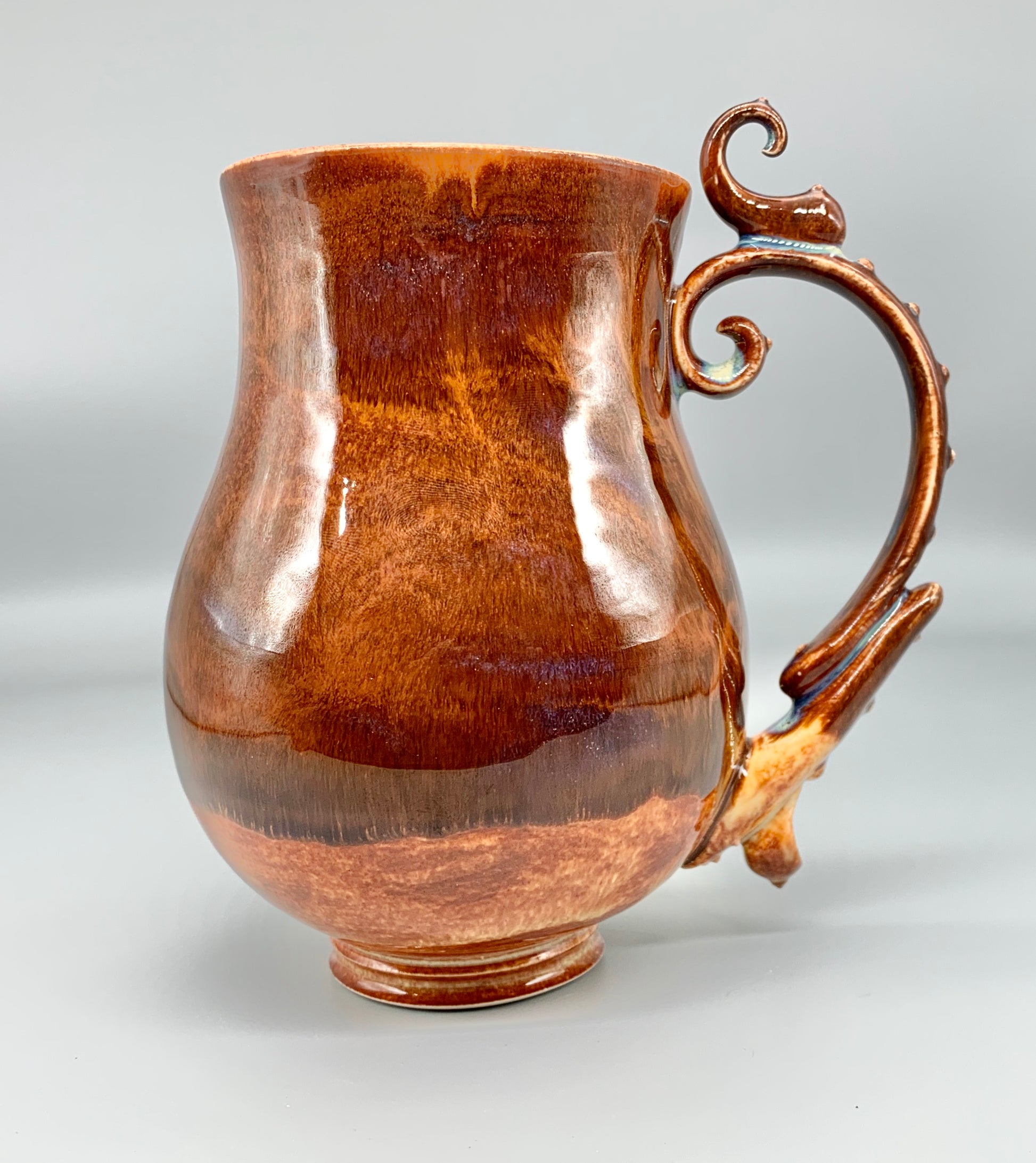 A lovely glossy orange porcelain mug 6.25”H x 4.25W
