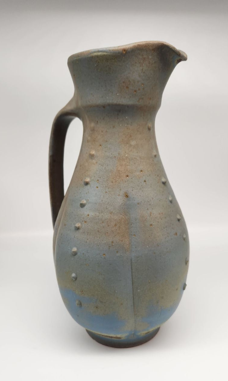 A Lovely earthy blue stoneware pitcher 12”H x 6.6"W